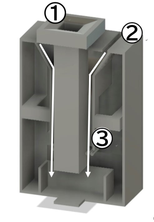 公共の場に設置することを目標としているため、耐火性,耐久性に優れており、景観維持のために捨てられた吸い殻が外から見えない吸い殻入れを考える必要がありました。そこで、私たちは同じ川崎市内にある川崎総合科学高校のロボット研究部と協力し、タバコごとすり潰して鎮火する構造を考えました。