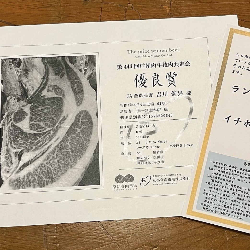 パートナーの皆様沢山の応援誠のありがとうございます!今回皆様に喜んでいただけるよう牛枝肉共進会で【優良賞】を獲得した信州プレミアム和牛の仕入れに成功しました!私が最近最も一押しの牛(オレイン酸数値が非常に高く甘みが強いんです!)の優良賞獲得牛ですので、間違いなく喜んでいただけると自信を持ってお届けさせていただける逸品です!これから応援していただける方のお肉も確保できておりますので、この機会に『優良賞』を獲得した一級品の肉をご堪能下さいませ!
