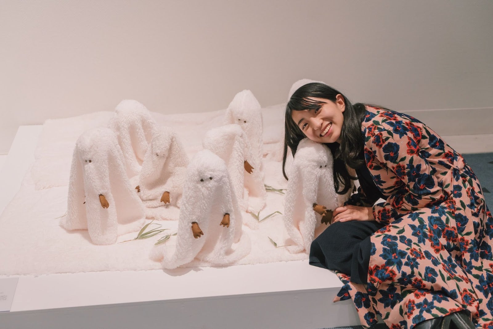 ▲ご自身の作品「ネオアニマ.にゅう!にゅう!にゅう!」と近藤さん