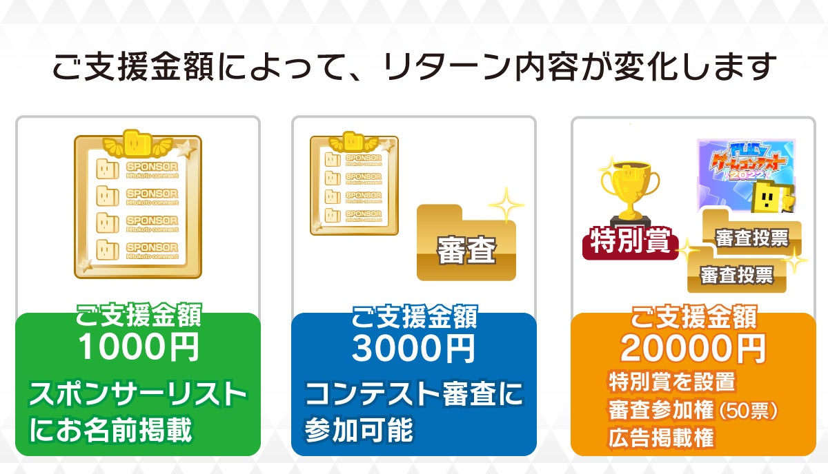 本プロジェクトのご支援金はゲームコンテストの賞品購入費に活用されます。