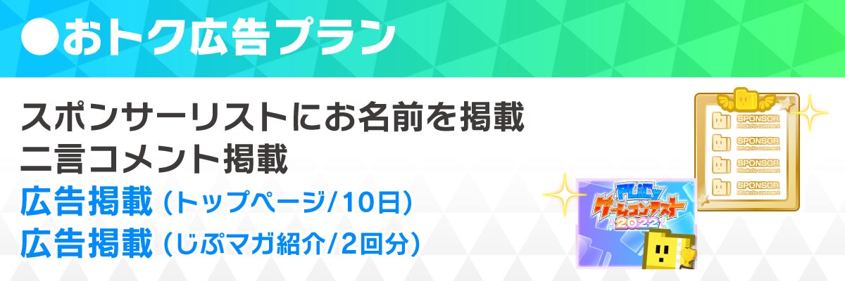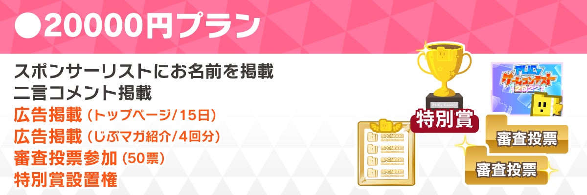 ・「20000円プラン」にてスポンサー特別賞の設置が行われます。