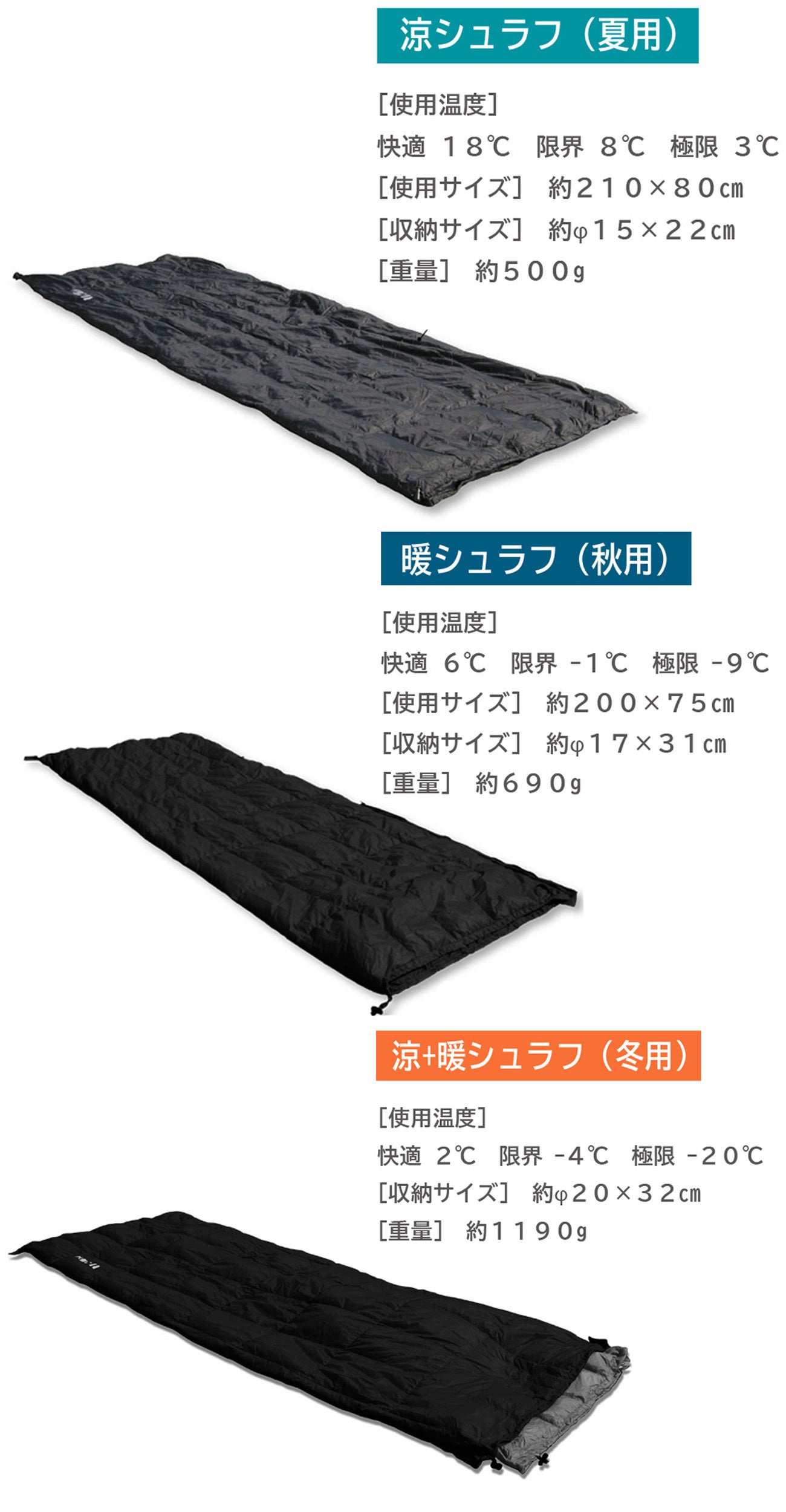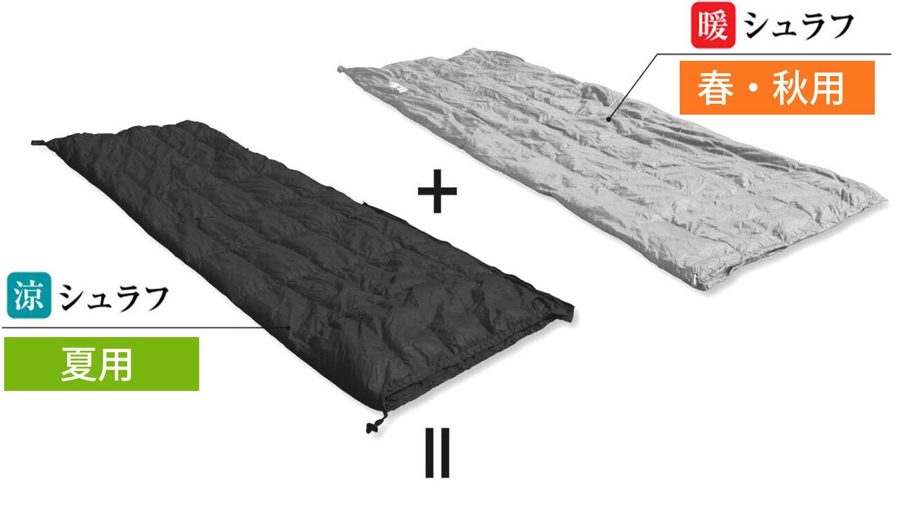シュラフ2枚使いにより季節に合わせた温度調整が可能
