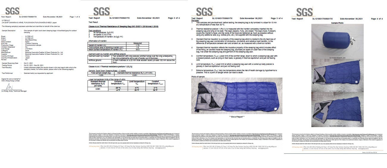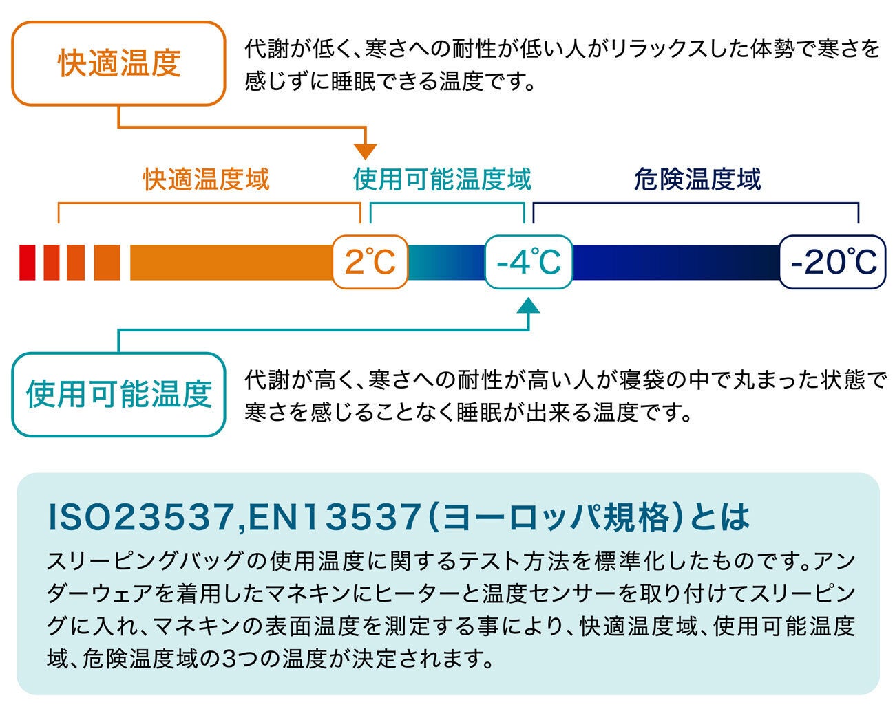 フルシーズン2in1シュラフの温度表記はISOの認証試験済み