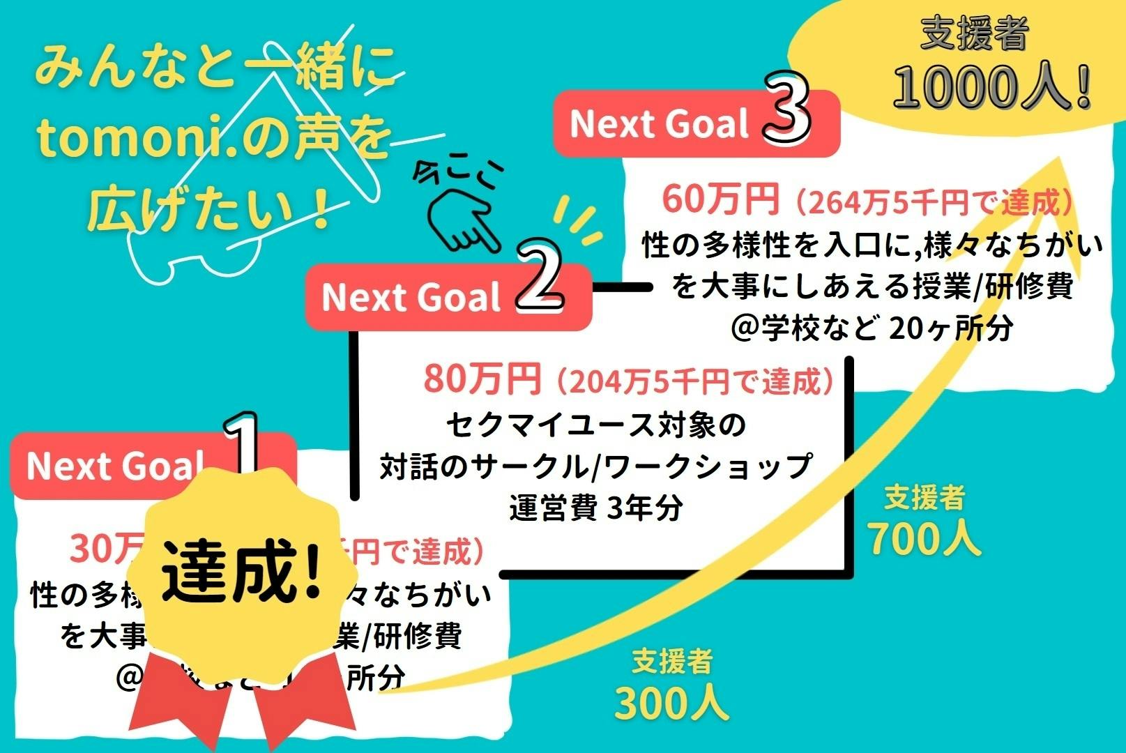 tomoni.のクラウドファンディングはおかげさまで、開始61時間の2/7にファーストゴールを、2/19にネクストゴール①を達成しました!