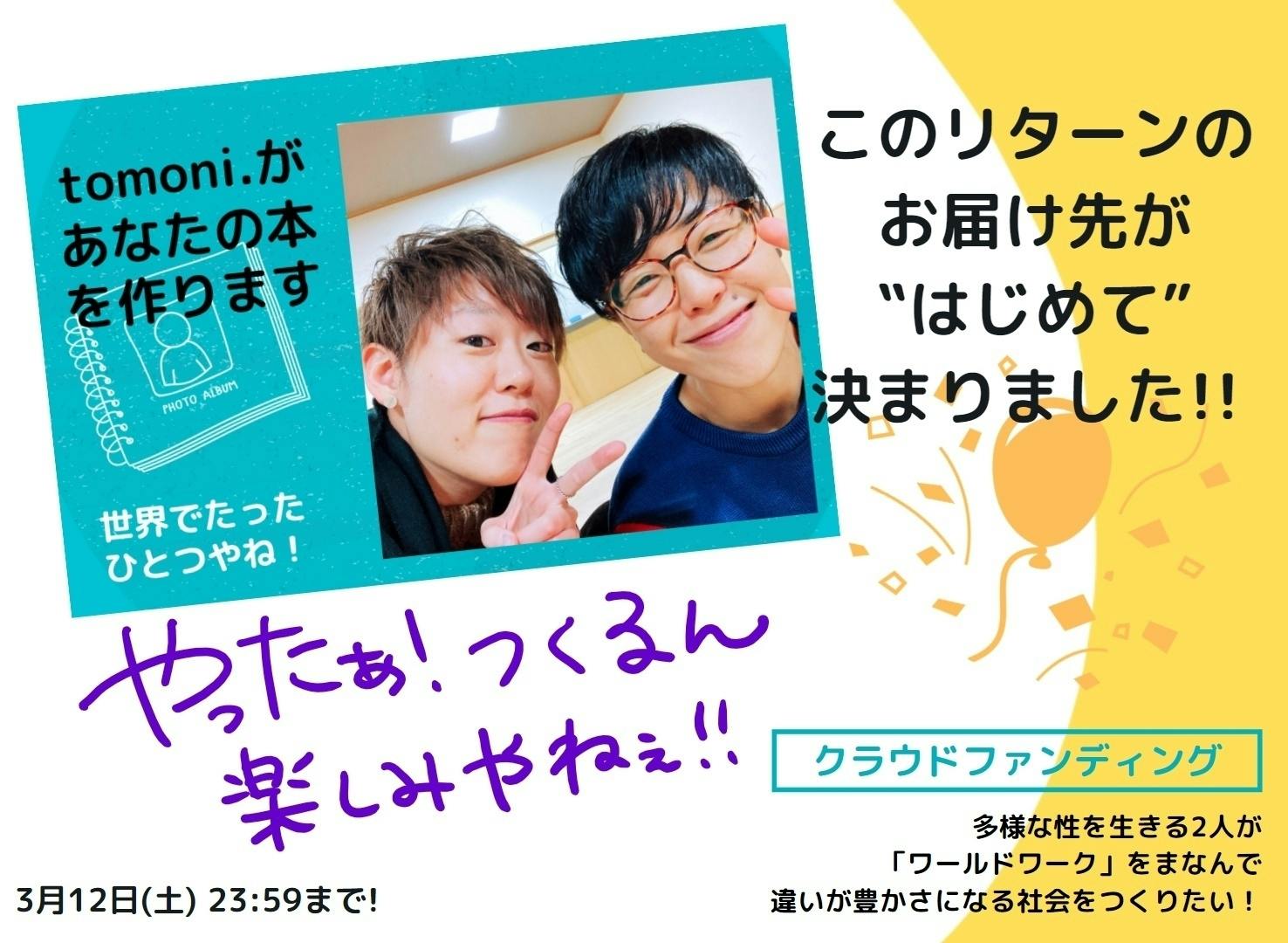 ▼tomoni.のクラウドファンディングページ【3/12(土)23:59まで】
