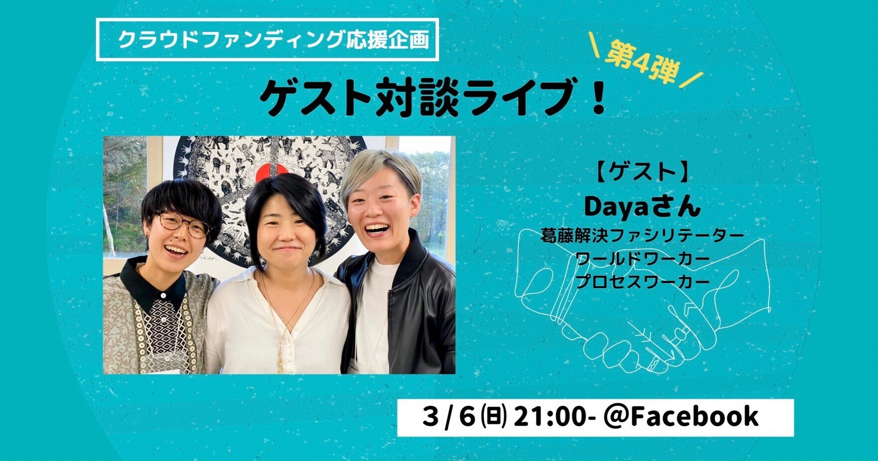 今日はtomoni.の対談LIVEが2本!tomoni.のFacebookグループ&個人のタイムラインで配信します*・17:00-18:00 ゲスト:荒川隆太朗さん(NPO法人Gift)・21:00-22:00 ゲスト:Dayaさん(プロセスワーカー/ワールドワーカー)tomoni.のクラファンを褒めちぎってもらえたり、残り時間にターボをかけるようなお話をしたり…という予定です^^どうぞ、ラジオ感覚でお聴きください◎来てくれると嬉しいです^^お待ちしてまーす!!▼tomoni.のFacebookグループhttps://www.facebook.com/groups/1530644600616638********************************●現在のゴール・支援人数:300人・支援合計金額:204万5千円セクマイユースを対象とした「この自分でよかった」「あなたがあなたでよかった」と思える対話のサークル・ワークショップ運営費 3年分(80万円)※セクマイユース=セクシュアルマイノリティ/LGBTQ+の子ども若者たち=====================▼tomoni.のクラウドファンディングページ【3/12(土)23:59まで】※スマホはリターンがページの最下部にありますhttps://camp-fire.jp/projects/view/547900▼tomoni.のFacebookグループ先行情報や過去の広報投稿などが見られます。https://www.facebook.com/groups/1530644600616638#違いは間違いじゃない#かけがえのない美しいギフトだ#違いが豊かさになる社会に#ありのままの存在が慈しまれる関係性へ=====================