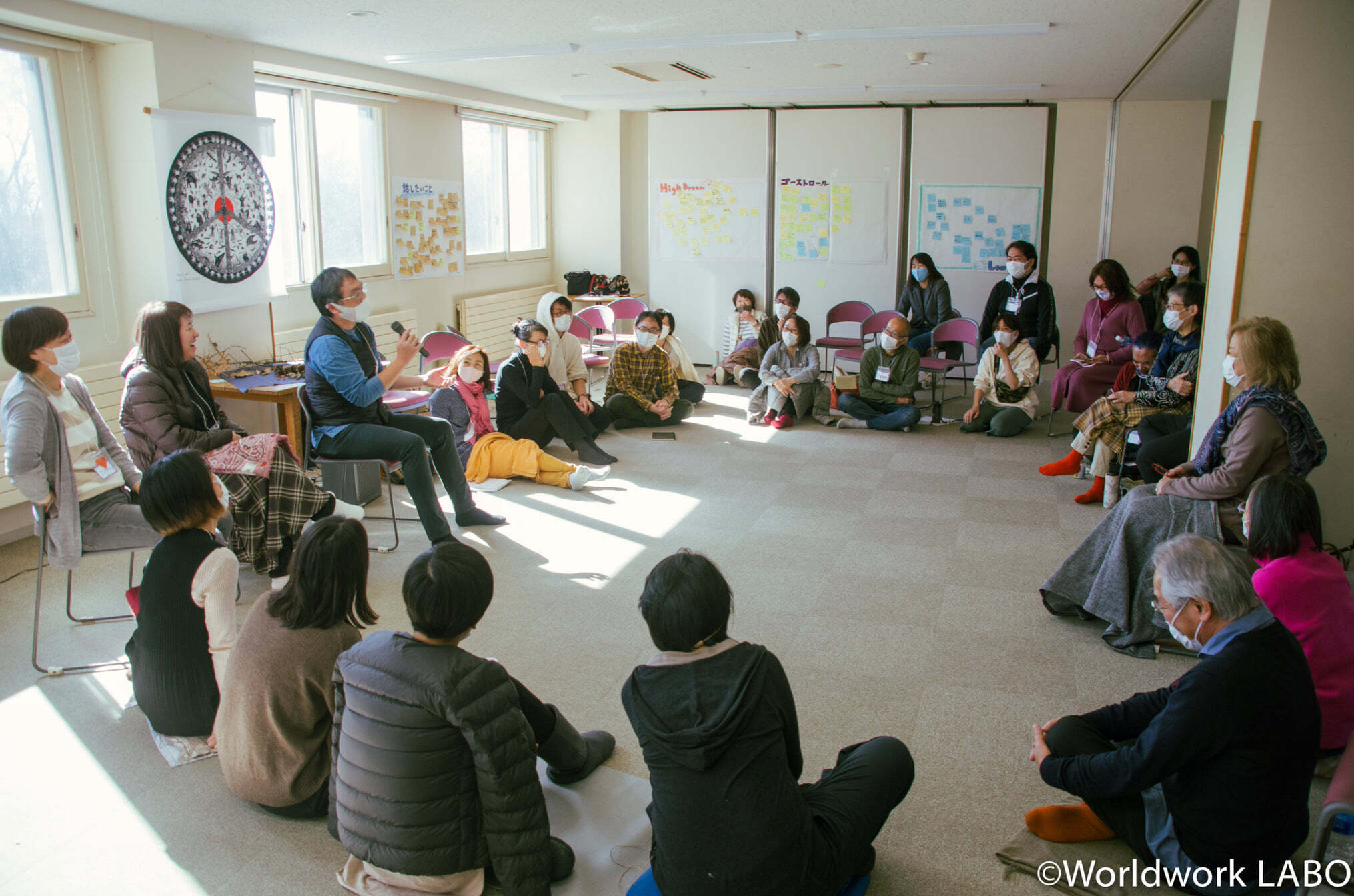< ワールドワークでは普段なかなか扱われない声や、不快な感情にも耳を傾けようとする。今回は、僕らが目を逸らしがちな意見や声に向き合うヒントを学んだり、トレーニングを受ける予定。写真提供:ワールドワークLABO >