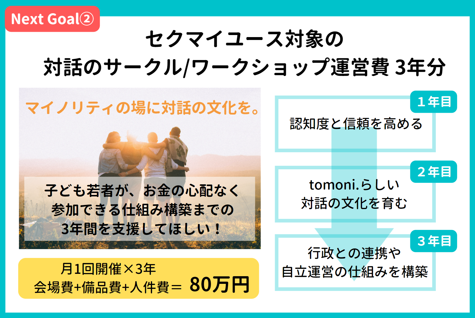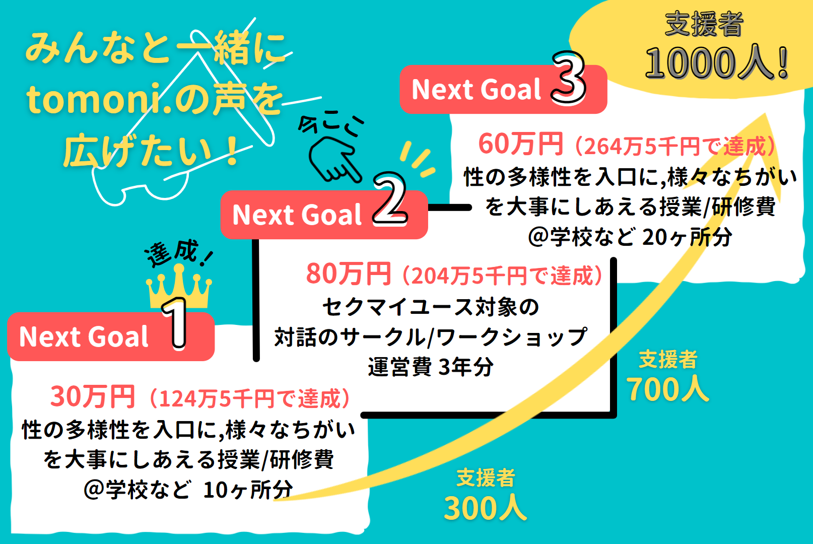 これからは資金を集めるというより、僕らのメッセージを広く届けていきます。応援者・賛同者の存在の可視化に主眼を置いて、期間中に『支援者1000人』を目指します。