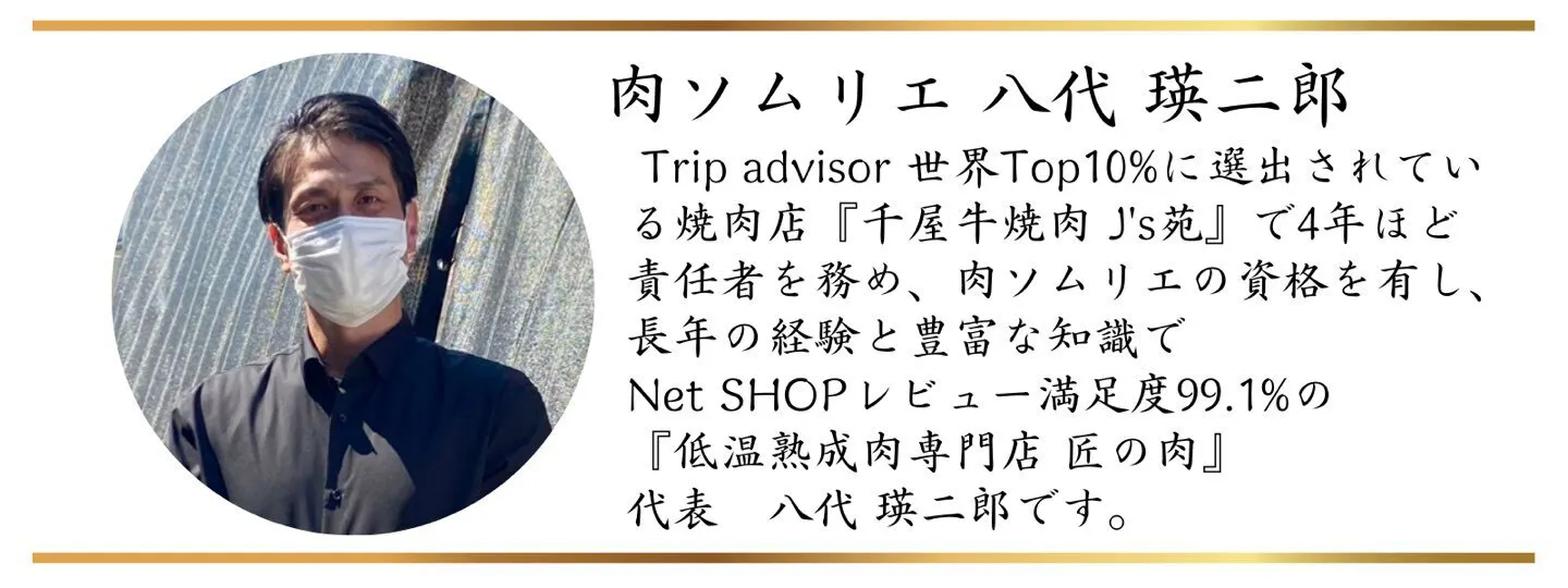 私はTrip advisor世界TOP10%に選出されている焼肉店【千屋牛焼肉J's苑】で4年ほど責任者を務め、豊富な知識を必要とする”肉ソムリエ”の資格を所持しております。