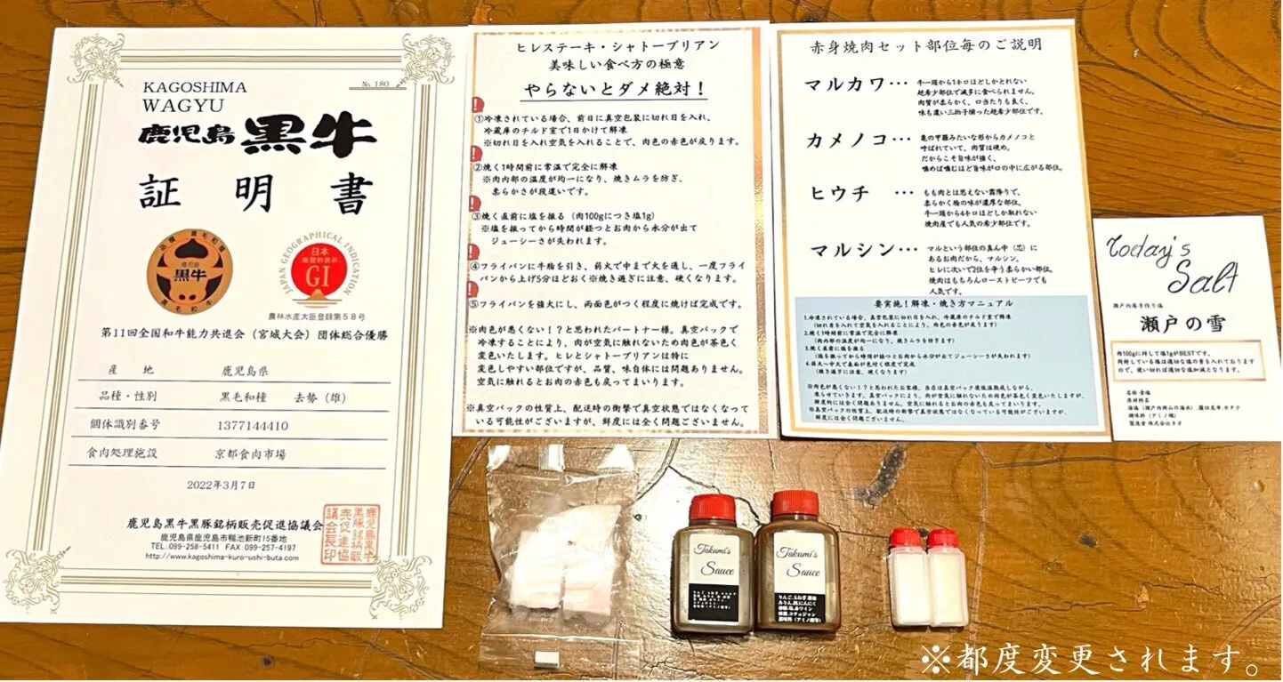 ・プロジェクトに使用している画像に関しまして、実際の商品にできる限り忠実に表示できるよう努めておりますが、牛も生き物ですので全ての牛でサシの入り方や形が違います。 また写り方や光の加減で、実際の商品と若干の誤差が生じる場合があります。予めご了承ください。