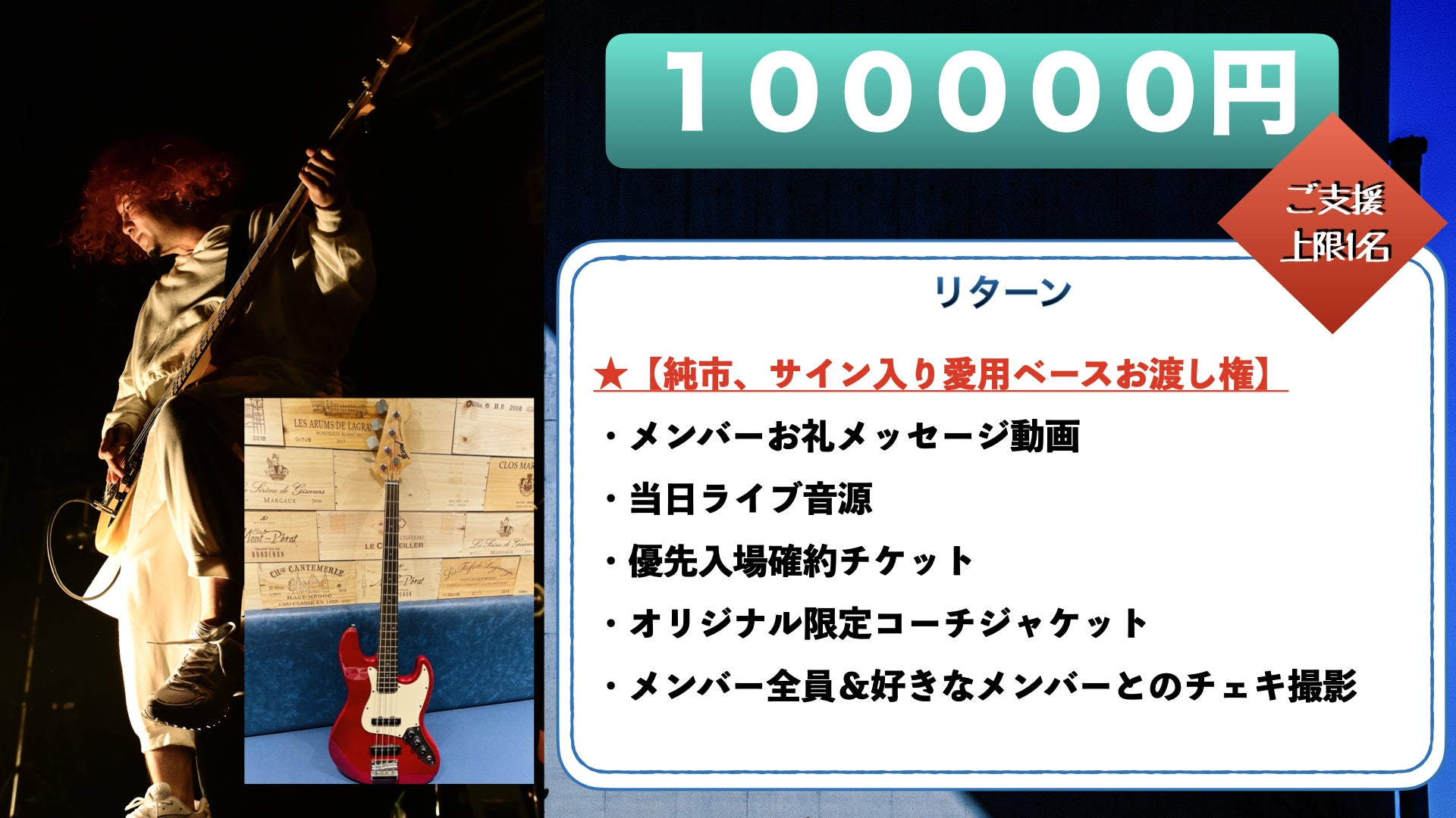ベースの純市が愛用しているベースをサインを入れお渡しさせていただくリターンです。