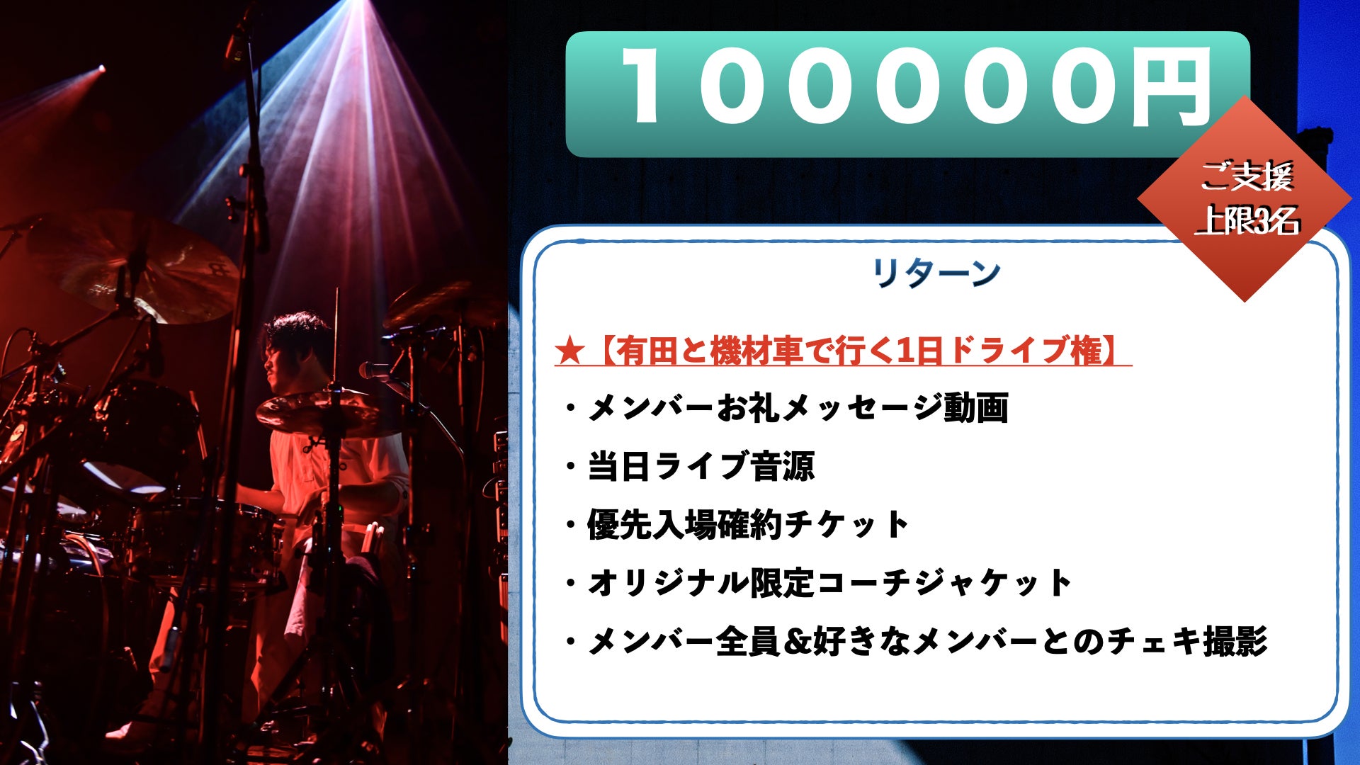 僕らへの温かい応援のお気持ちと共に支援をしてくださった皆さんには、ライブ当日の優先入場以外にもさまざまなリターンをご用意いたします。