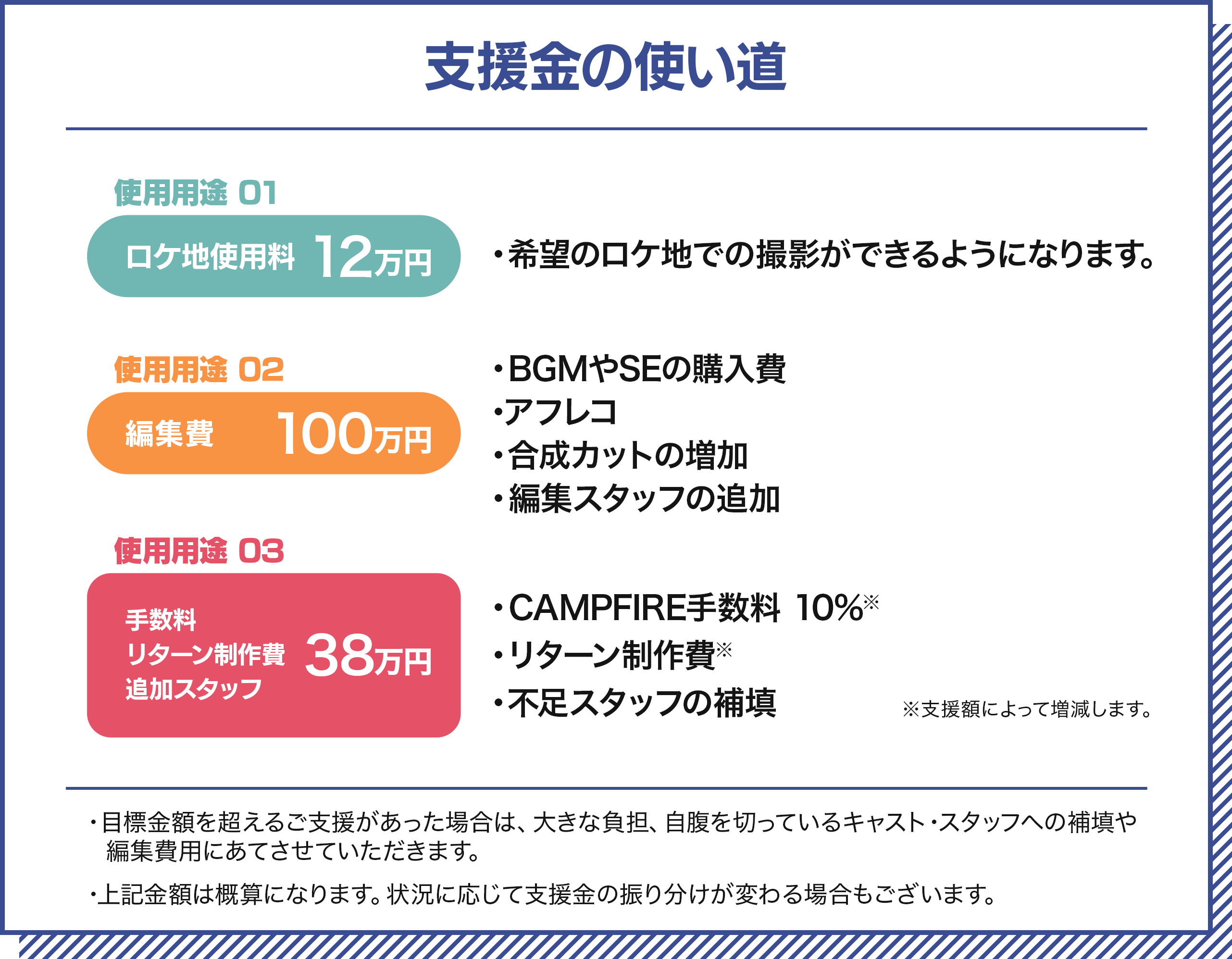 それでも制作費はギリギリのため、有志で集まらなかったスタッフの補填や編集などまだまだ妥協しなくてはならないところが多い状況です。