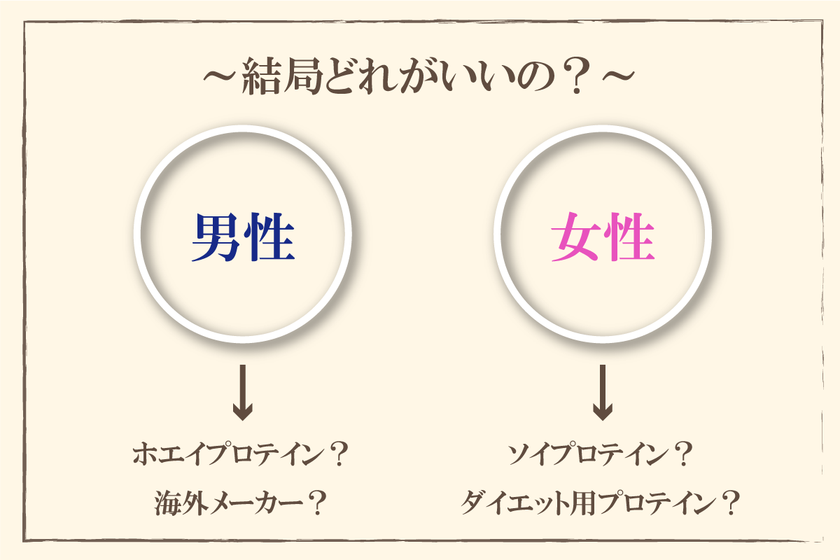 私個人の意見ではありますが、「どのプロテインを選んだらいいの?」となる方が多いと感じています。確かに色々なメーカー、様々な用途(筋トレ、ダイエット、男性向け、女性向け、etc...)書き出すと止まらないほど選択肢が多くあります。