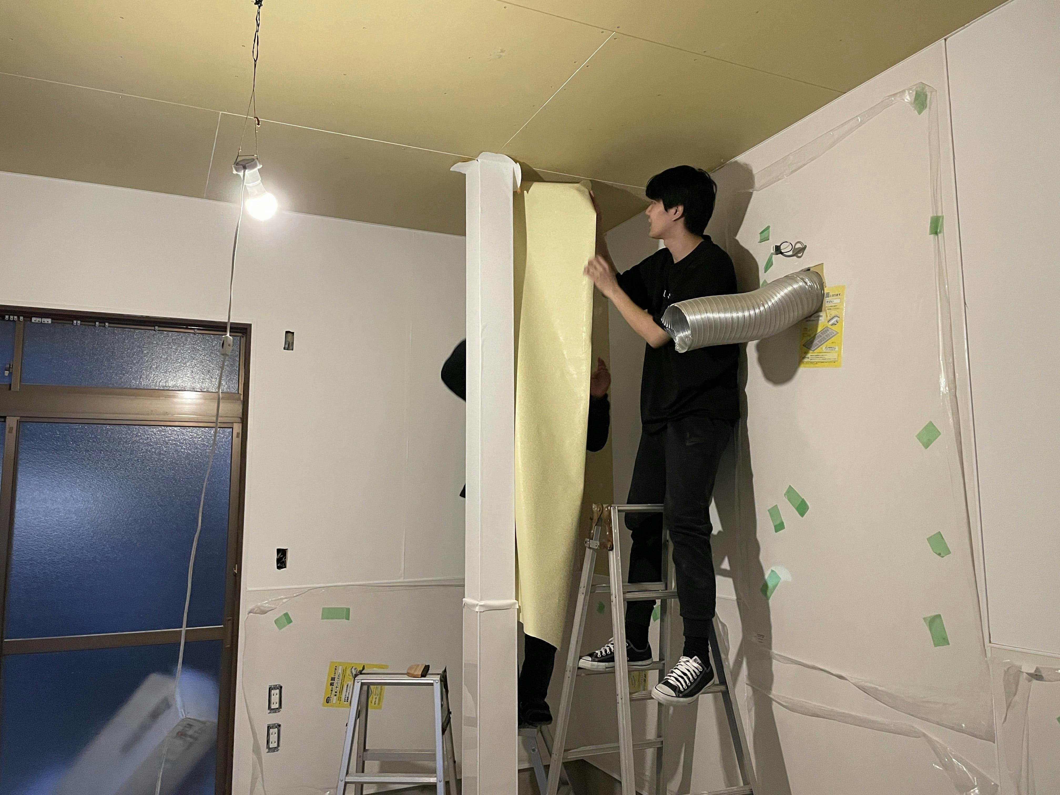 自分たちで壁紙を貼ったり、厨房機器を運び入れたり、