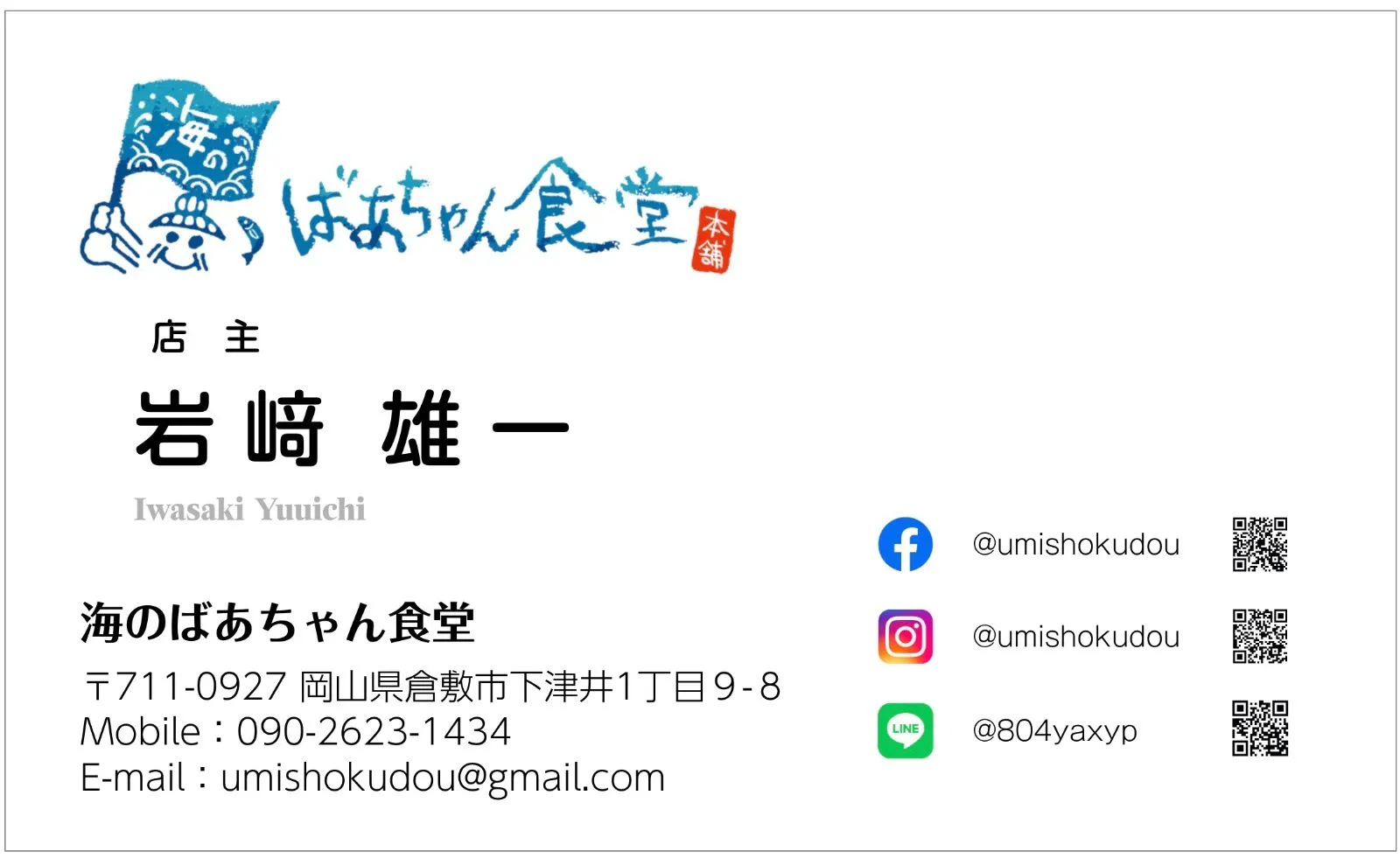 岩﨑さんは、現地に移住して事業をスタートさせることからも本気さが伝わってきます。今後、地方の田舎ではさらに超高齢化が進んでいきます。わたしたちの事業を通じて、おばあちゃんたちの働く場や仕事の創出、おばあちゃんたちの知恵や味を伝承していきましょう。これから海のばあちゃん食堂のさらなる発展を楽しみにしております。また下津井にお伺いさせてもらいます。