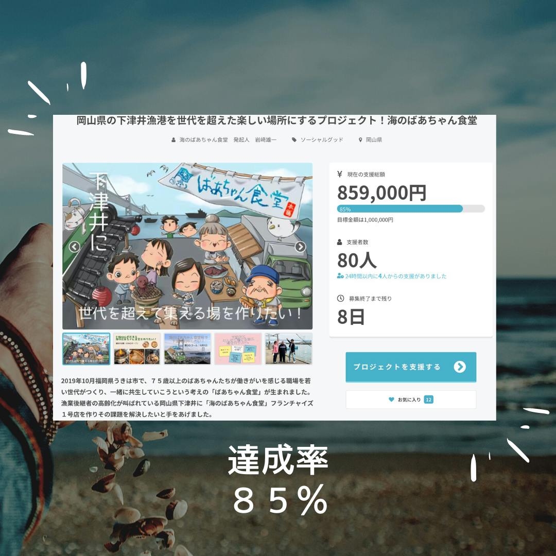 多くの人々の想いが詰まったこのプロジェクトも幸せなことに、達成率が85%となりました。
