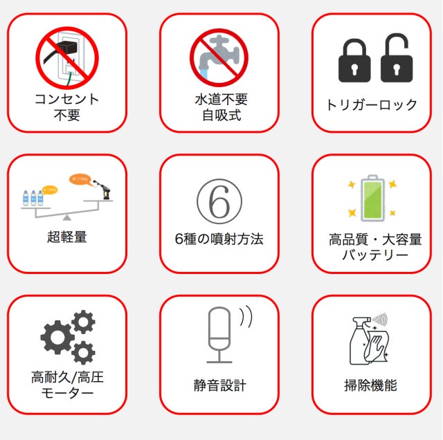 既存の高圧洗浄機でありがちだった、延長コードが必要になったり、コードが絡まったりする悩みからも解放されます!