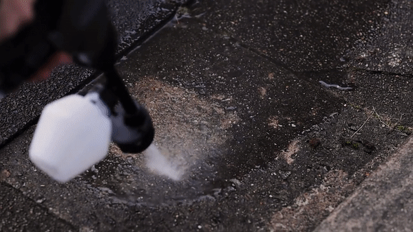 「HOTO HPWM X6」の洗剤タンクに洗剤を投入し、シャンプーモードで洗剤泡を洗いたい場所に吹きかけます。