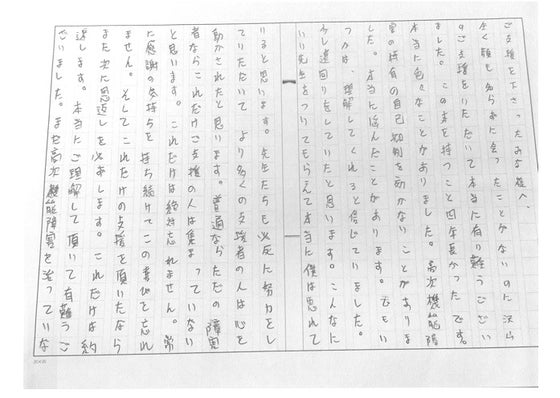 Reジョブ大阪の西村です。このクラウドファンディングもいよいよ本日が最終日。大勢の方が支援してくださったこと、心強く思っています。深く感謝致します。ありがとうございました。 このクラウドファンディングは、私が担当した大勢の高次脳機能障害者のうち、一人の患者さんの手記を世の中に出そうと始めたものです。患者さん達に対して差を付けることは本意ではありませんが、私はこの本の出版に際して、運命のようなものに導かれているような気がしてます。みなさんの支援もあり、この本の先にあるものについて思いを巡らせ、また考えを深めていきました。そしてNPO設立という大きな決断もしました。皆さんが支えてくださったこと、寄せられた数多くのメッセージ、すべてが宝物です。そしてこの宝物を得る最初の鍵は息子にありました。 学習障害の息子を受け入れてくれた社会 私の息子、今は大学生ですが、言語性優位の学習障害児でした。小さい頃から言葉は達者なのですが、図工ができないなどの苦手なこともあり、また、とにかくよく道に迷う子でした。私は言語聴覚士だったので、息子のことには早くから気がついてたのですが、それを苦痛に思うことはありませんでした。それは、私たちの周囲に居た人達が、息子をしっかりと支えてくれたからです。息子ができないことは、息子の友達が助けてくれました。宿題も手伝ってくれました。何より、学校の先生が理解者になってくれ、支えてくれました。また、ご近所のお母さん達が面倒を見てくれたのも嬉しかったです。息子の障害のことをカミングアウトできたのも、それを受け入れてもらえたのも、私の周りの社会に受け入れる心があったからだと思います。今では普通に大学生活をエンジョイし、昨日、ネパールの旅から戻ってきたところです。あんなに迷子になっていた息子が、海外に旅をするだなんて不思議です。 多様性のある社会で障害を受容してほしい。 今の日本は、患者さん本人や家族が「障害があると受け入れてもらえないのではないか」と不安を感じていることが多い気がします。障害者であることを隠したり、引きこもったりする家族がいるのも、周りに受け入れてもらえないのでは、という不安がそうさせているからかもしれません。妊婦さんが障害児を妊娠することを恐れたり、認知症の両親を家から出さないようなしたりすることもありますよね。そしてそういう悲しい社会を構成しているのも、また私たちひとりひとりでもあるわけです。最近は、色々な診断が付くようになり、障害者の数は増えています。新たにカウントするようになった障害もありますし、実際、生活習慣病が原因の脳損傷、交通事故による脳損傷は現代になって増えています。そうして実際、私たちの周辺には、何らかの障害を持った人、何らかのマイノリティな問題を抱える人が多くいます。そして、これは是非とも強調したいのですが、後天的である障害も多くありますから、いつ、誰が障害者になってもおかしくないという時代であるとも言えます。そして、下川さんはたった一人の症例ですが、その後ろには、家族がいますよね。現在、高次脳機能障害者数は50万人と言われています。10年前のデータで最新という状態ですので、今はもっと増えているでしょう。もちろん診断のついていないケースも多いのです。それぞれの障害者にはその後ろに家族がいます。高次脳機能障害は特に若い人で増えてて、この障害を持ったために、若いのに社会に戻れない人も多いのです。障害や問題を抱えながらも安心して暮らしていける社会になったら、この障害者の人達、その後ろにいる家族の人達は、どんなに救われることでしょう。 知ってみようかなと思ってくれたことに感謝 息子の時のように、日本全体を受け入れてくれる社会にする為に必要なこと、それはまず「知る」ということです。人間、知らないものは怖いのが普通ですよね。私も怖いものはあります。でも、どんな原因でそうなってしまっているのかだけでも分かれば、怖くはなくなります。積極的に話しかけるようなことはできなくても、少なくとも「排除しよう」という心は働かなくなります。このクラウドファンディングに参加してくれた方の中には、身内の方が障害者だという方もいらっしゃいますが、ほとんどの方が、そういうわけでもないのに、支援してくださいました。この「高次脳機能障害って何だろう。どうして『見えない障害』なんて言われるんだろう」そう思ってくれたことが、大切なのです。「知ってみようかな」と思ってくれたその行為が、その人の、そして社会の運命の分かれ道で、善い選択をしたことになると思うのです。障害者を見ても「なんやこいつ」と思わないこと、そしてもっと知識があれば、社会から手を差し伸べることも可能。障害者の方の長所を活かした雇用をしている経営者や、その人ができないことを把握してきちんと配置
