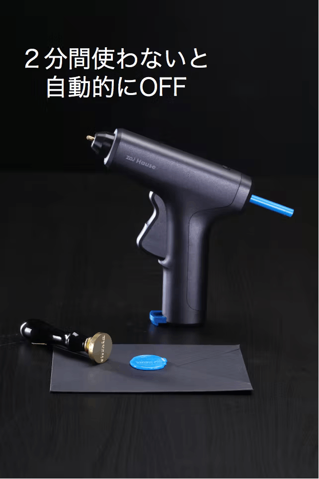 「zai Hause DIY-KIT PRO 」の電動グルーガンには、2分間操作しないと自動で電源がOFFになるセーフティ機能が付いているため、誰でも安心して使えます。