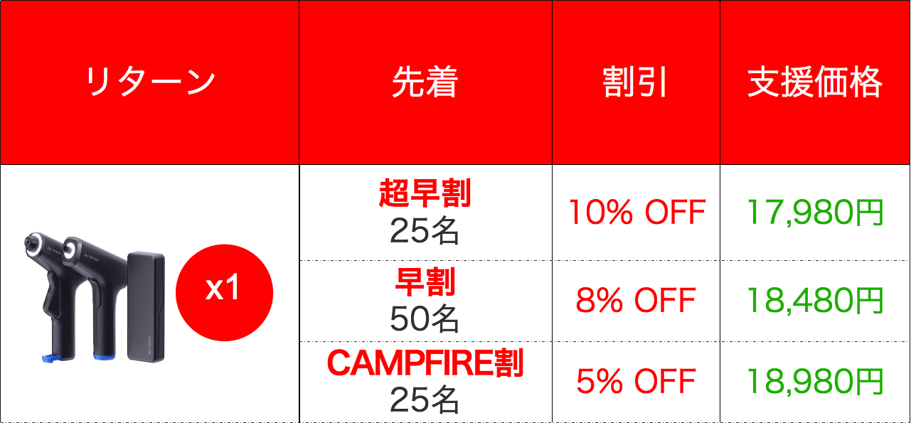 ※想定を上回る皆様からご支援を頂き、量産体制を更に充実させることができた場合、一般販売価格が予定価格を下回る可能性がございます。