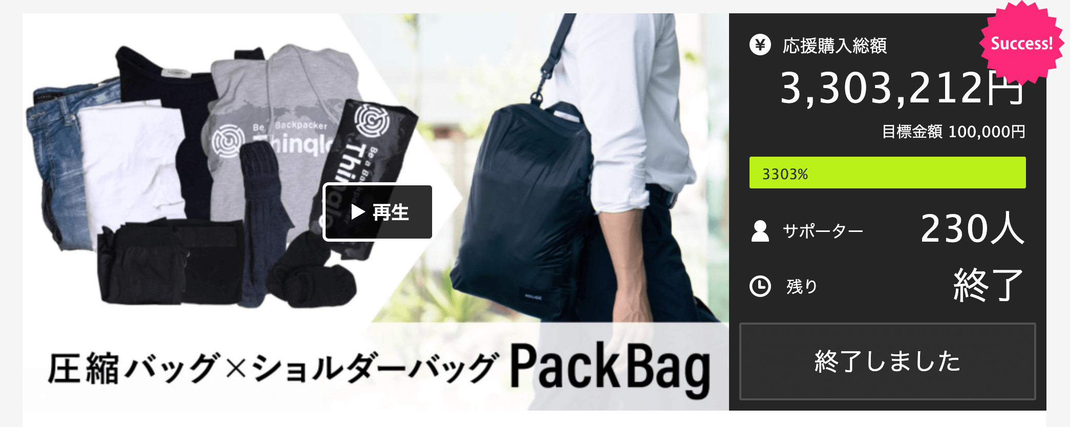1年半前クラウドファンディングを実施した第一弾のPackBag
