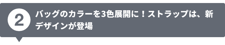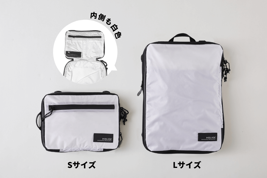 今までバッグ本体のカラーはブラックの1色のみでしたが、「どのバッグにどの荷物を入れたかわからなくなる」「女性も持ちやすい色が欲しい」などのご意見をいただき、アースグレーとエターナルホワイトの2色が新たに仲間入り。