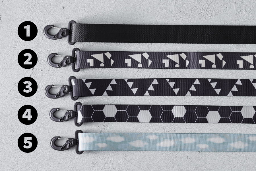 ショルダーストラップは5種のデザインの中から、バッグ1つにつき1種類、お好きなものをお選びいただけます。