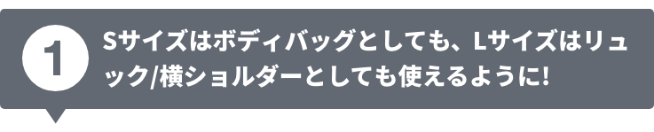 Sサイズは、ボディバッグとしても使えるように持ち手の位置を変更。体にフィットするように設計されているため、自転車に乗るときなどにも便利です。