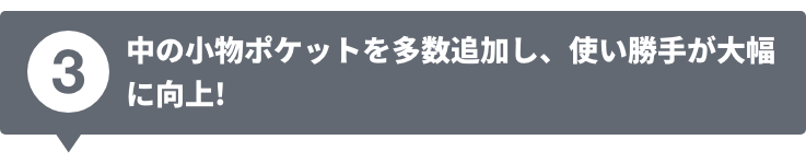 ※Sサイズの内側にあったメッシュポケットは無くなりましたが、代わりに前述の小物ポケットが追加されています。