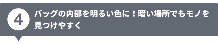 バッグ内側の生地の色に、それぞれ明るい色を採用。「ロッカーの中でバッグをあけるときなど暗い場所で中身が見えにくい」というお声をいただき、生地の色を変更しました。