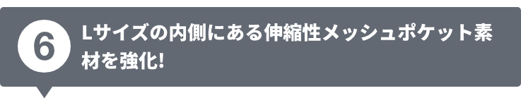 より多くの荷物を圧縮したり、リュックとして大きな荷物を入れて背負うこともあるLサイズは、内側の伸縮性メッシュポケットの素材を強化し、耐久性を向上させました。
