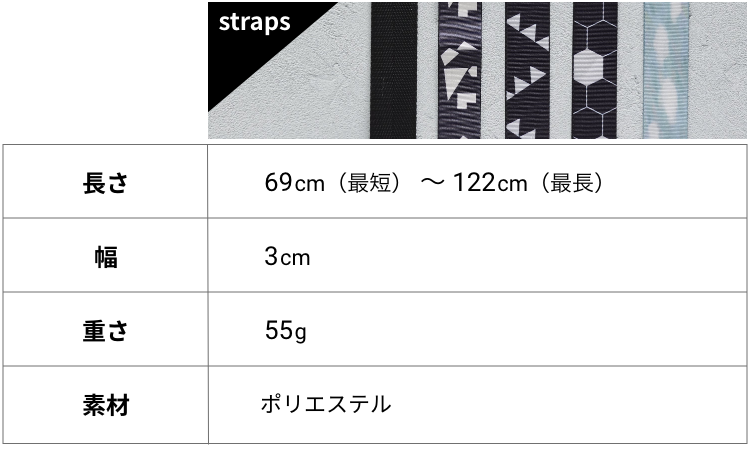 ※Sサイズは1本、Lサイズは2本のストラップが付属します。Lサイズはリュックの形態では2本同時に使用するため、お選びいただいた1種類のものを2本お届けします。