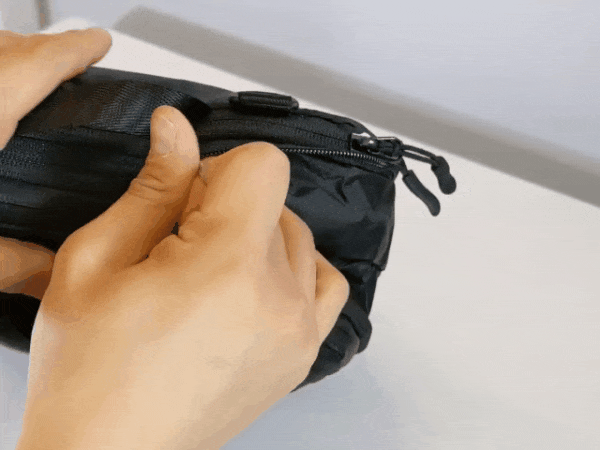 重さ以上にかさばる洋服などの荷物を最大50%圧縮してカバンの中をコンパクトにまとめ上げていきます。ファスナーをクルッと一周閉めるだけで圧縮できるため、大きな力は要りません。