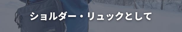 Lサイズは、待望のリュック形式に対応!また、横方向のショルダー(メッセンジャーバッグ)にもなるよう、ストラップを引っ掛ける位置を増やしました。
