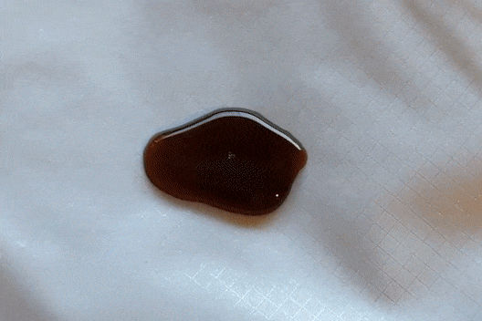 エターナルホワイトの生地に醤油を垂らしたもの。シミになることなく簡単に拭き取れます。