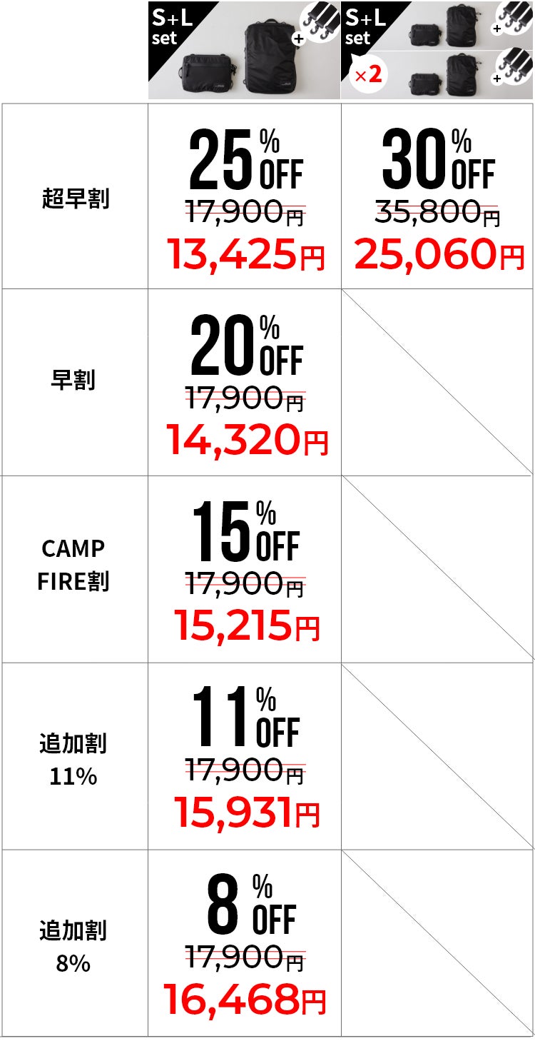 ※Sサイズ+Lサイズのセットでご購入の方も、Sサイズはメタルブラック、Lサイズはアースグレーというように、それぞれのサイズで違う色を選択いただけます。