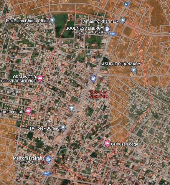 その中で今回の事業のターゲットになるアシィエ地区はアクラの中心地から車で30分ほどの郊外に位置します。人口は3,000人程度です。