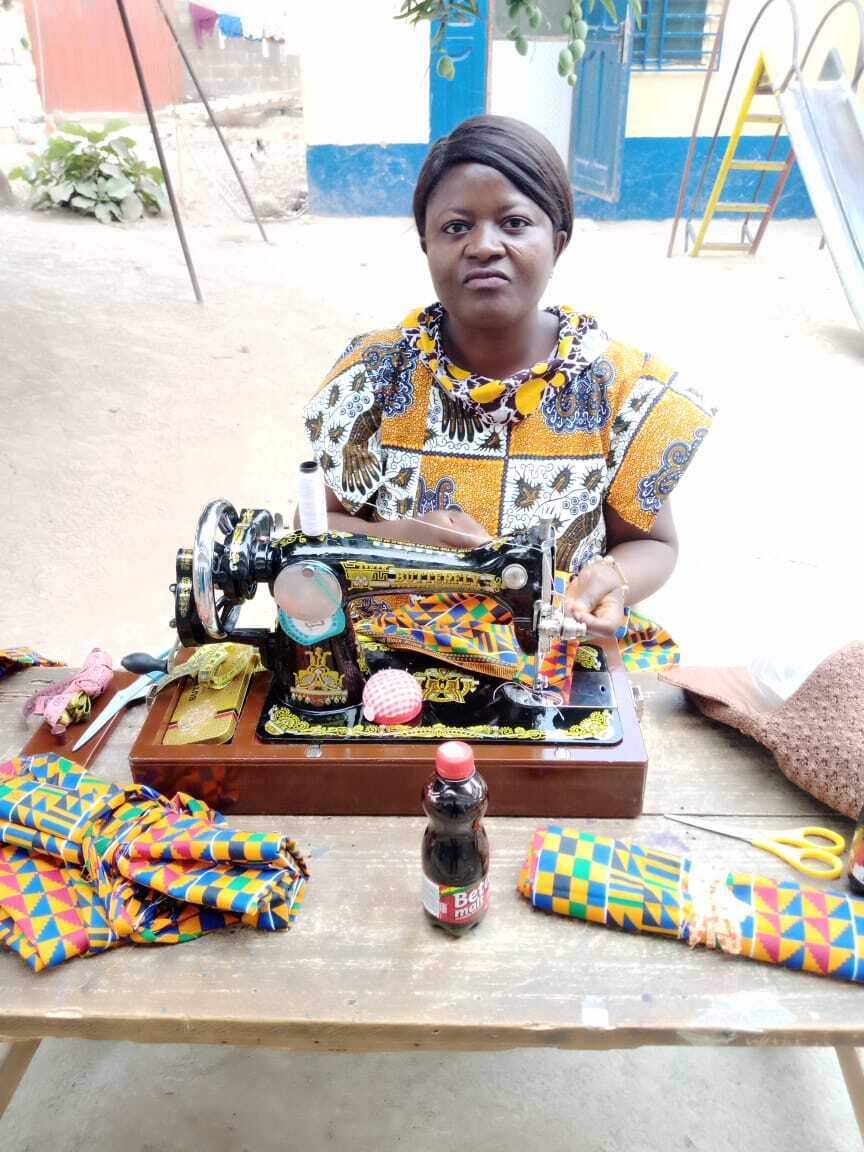 ガーナをはじめとするアフリカ諸国では、先進国から輸入され 、破格で販売される膨大な数の古着の影響で、現在テイラーとして働いている人々は収入が減っているという現状があります。そのような中で選ばれる服や製品を作るために、「安定した技術力」と「人々を魅了するデザイン力」で付加価値をつけることができるように、シングルマザーたちはプログラムを通して腕を磨いています。そこで、ViVIDの現地メンバーであり、2021年末に開催されたミスインターコンチネンタルガーナで見事第3位に輝き、デザイナーとしても活躍している、アコーシアを講師として招き、シングルマザーたちは洋裁の基礎からデザインまで学んでいます。将来的には、シングルマザーたちがファッションブランドViVIDとして、独自ブランドを立ち上げ、ガーナだけでなく、日本の皆さまにも彼女たちの製品を届けることを展望として見据え、職業訓練プログラムを実施しています。