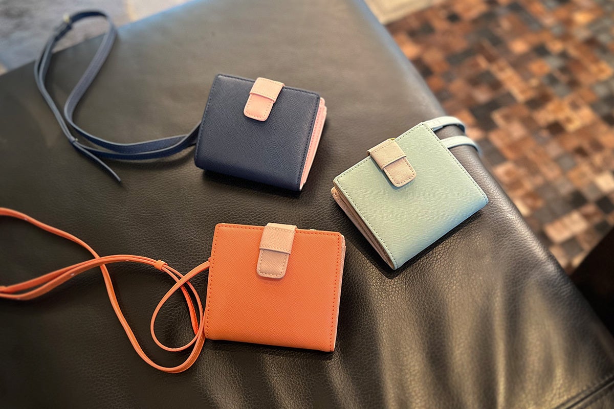 軽い、傷や汚れが付きにくい、という特徴を持つ本革サフィアノレザーを使用した「手ぶらウォレット」です。シーンや服に合わせて、ミニ財布・ ネックウォレット・お財布ショルダーを使い分けられる3way!