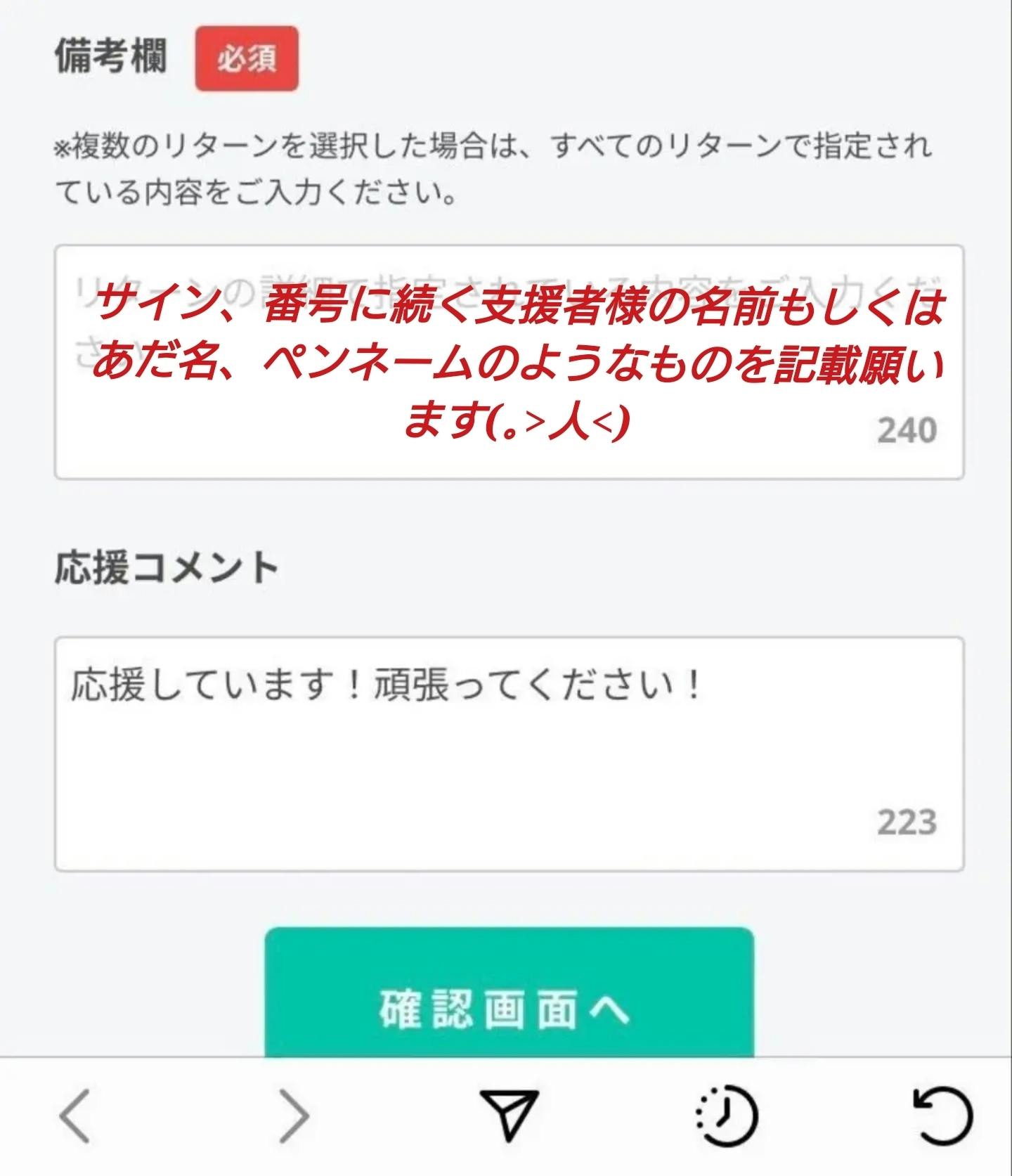 備考欄の近くに書かれてるかと思っていたのですが、本日支援者様から問い合わせがありまして、発覚しました。