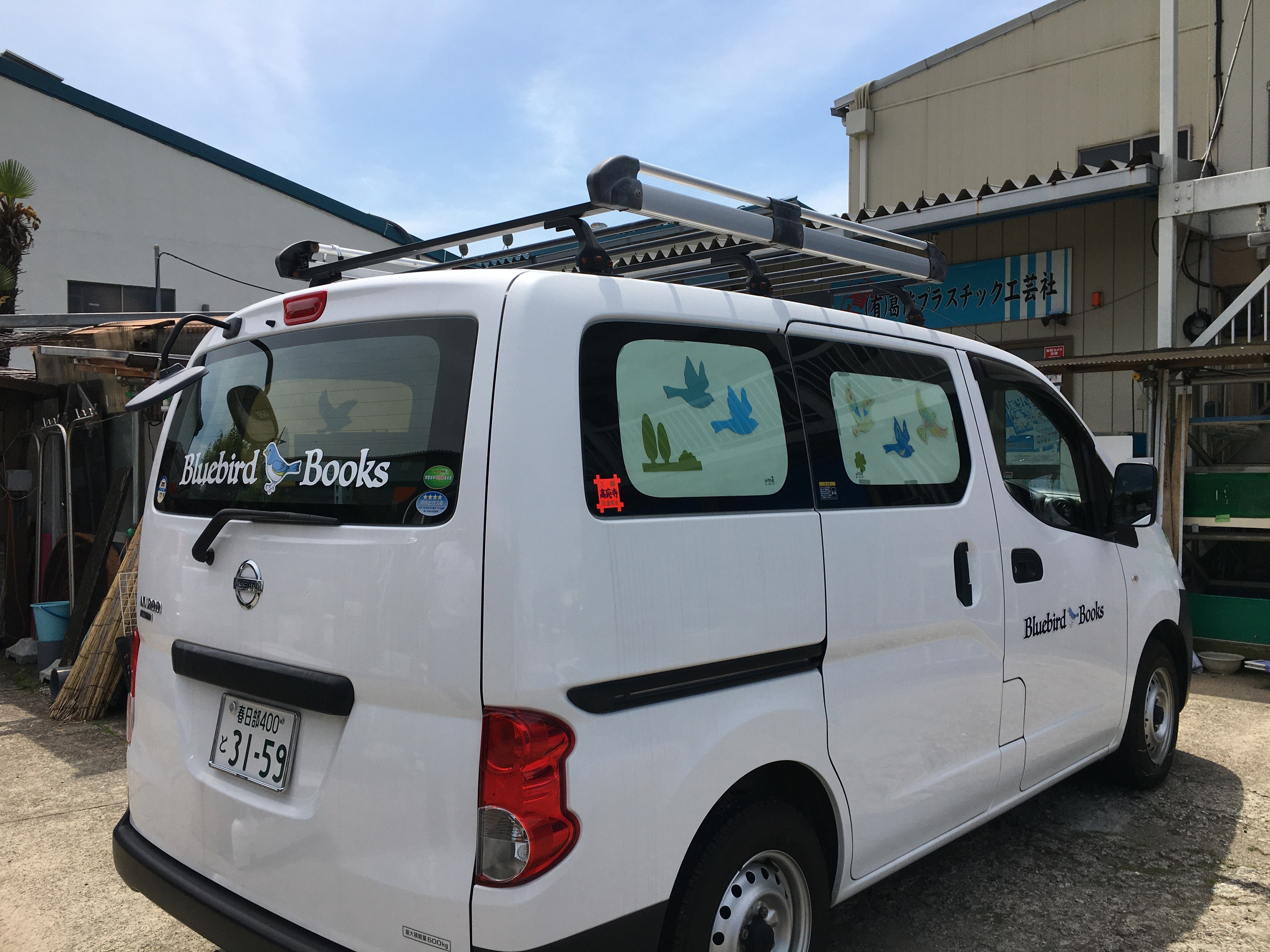 青い車になりました!!!予約順待ちでお願いしていた車の塗装が、2月に実施できまして、いよいよ青い車になって帰ってきました。少し無理を言って、ルーフの白とつながりでツートンにしたいとお願いしたところ、マスキングでボディの白も残してもらえました。(通常はパーツの切れ目で塗り分けます)また、営業日をなるべく確保したいというお願いも聞き入れてくださり、予定よりうんと早い期間で仕上げてくれました。三郷市天神のBodyWorks島村さん、ありがとうございました。実は思い描いていたよりすこし濃いめの青になったのですが、青空にも負けない青は、とても気に入りました。明るい時間に見ても、夕方、薄暗くなってもはっきりと青く、「自家用車ではなくてお店屋さんだよ!」という印象になったのではないでしょうか。職人の仕事なので当たり前ですが「塗装の仕上がりが素晴らしいね」という車好きな方々の高評価もあり、「ツートンがとてもいい」「青空と雲をイメージできる」という素敵な感想もいただきました。また先に作って使用していたロゴマークは、マグネットシートが白地になっているので、ツートンによく馴染んでいるところも狙い通りです。仕上がりの評価だけではなく、こうして移動販売らしい車にお色直しをしたところで、いただいた応援を大事にしようという気持ちを、改めて感じることになりました。先日開催したランチパーティでは、「車自体を5年10年と大事に使いながら、それだけの期間、お店をやっていけるようにしようと考えている」ことをお話ししました。古本の移動販売は、本を手に取る人を増やしたいという活動であり、事業です。ですから、たくさんの人が本を読めるようになることと、売上を維持して継続していけることは両輪で、欲張るわけではなく、たくさん売らなくてはなりません。これからますます、広がって、売り上げて、目的を果たしていけるように取り組みたいと考えています。色々な場所で、さまざまなお客様に出会うと、エピソードもたくさん生まれます。「うちの子、ここで買った本をとても気に入って、何度も読み返しています」〜きっと親子でじっくり選んで、楽しくお買い物をしたことで、その体験と相まって、選んだ本がお気に入りになったのではないかな。「お薦めしてもらって買った本の主人公(誕生日を祝ってもらううさぎ)と、娘の誕生日が同じだったので、とっても嬉しかった」〜こういうミラクルは毎回は続かないのですが、こうしたことでもっと絵本をたくさん読んでみたくなったというお話が嬉しかったです。「大きな本屋さんでは、わんぱくな子供と一緒に買い物するのが億劫だけど、この小さなお店では目の届くところで子供が本を見ていて(店主にちょっと構ってもらって)、私もゆっくり多ジャンルの本を眺められるのが嬉しい」〜小さいお店のいいところです。ページを破る心配、本を汚す心配をしてくださる親御さんにとって、それでも本屋さんは楽しいところ、と思ってもらえるように気をつけています。本の扱いに慣れない小さなお子さんには、読みたそうな本を私が読んであげます。誰かに読んでもらった本には、興味も湧きますし。「値札だった青い紙にマス目があったので、感想を書いてきました」〜リピーターさんからの嬉しいうれしいお便りです。前回買った本を読んだ感想がきける本屋さんはなかなかいないと思います!!また、出店のためにお借りしているお店とのご縁でも、「本屋さんに行ってみたいと思ってきてみたら、こちらのお店にも行ってみる機会ができた」ということがあります。毎度、私の方が場所をお借りする立場なので、場所の主にもお客様をご案内できることはとても嬉しいことです。大きな広告はしていませんが、こうした出来事を一つ一つ大切にして、ご縁を広げながらお店を知ってもらうことが大切だと思っています。青い車になってこれから迎える2年目以降の目標は、・売上をしっかり確保すること・事故なく無理なく続けていけるようにペース配分すること・楽しい出来事や、喜ばれることをふやしていくことです。目標をもとに具体的に進めていくことは、状況を見ながら判断していきますが、夢中になって大事なことを忘れないように書き留めておこうと思いました。