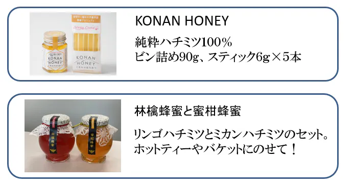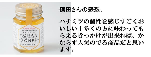 篠田さんは新商品を考えるあたり、KONAN HONEYが本当においしいハチミツなのでKONAN HONEYを知ってもらえるきっかけになる商品を作りたいと思われました。