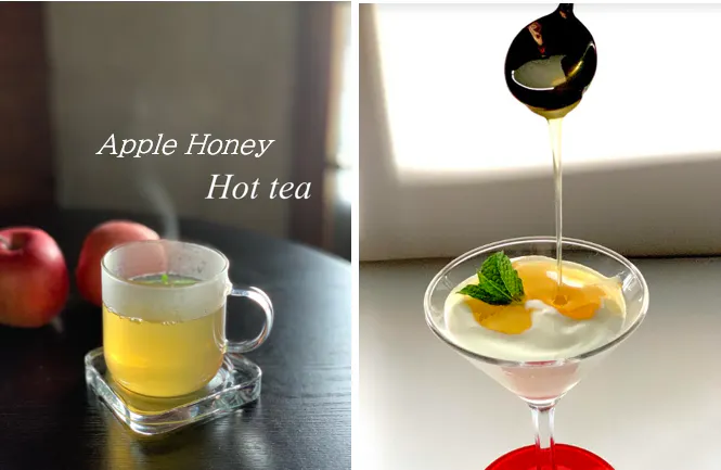 アップルハニーはホットティーやヨーグルトに添えていただくと美味しくいただけます。