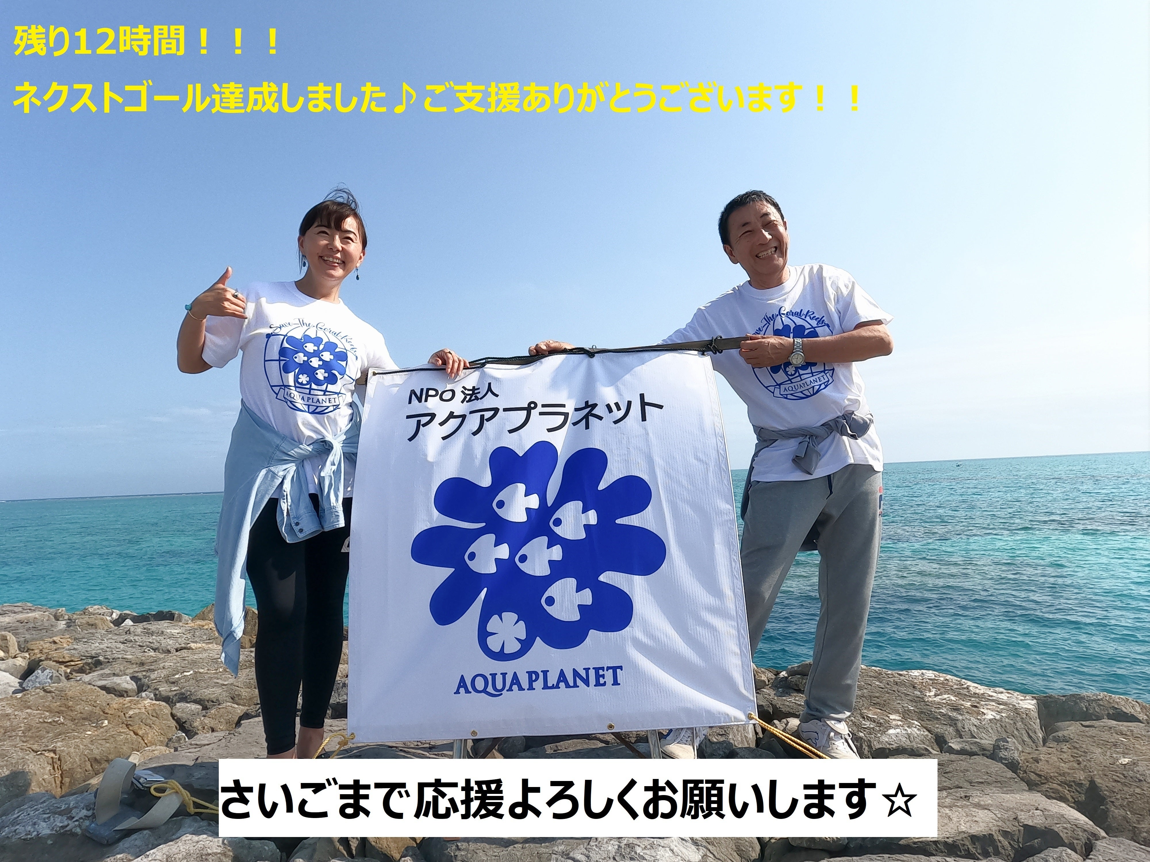 みなさま、たくさんのご支援、応援ありがとうございます♪ついに、ネクストゴールも達成できました!!本当にありがとうございます!!残り12時間、最後まで応援よろしくお願いします!!アクアプラネット 理事長 田中 律子