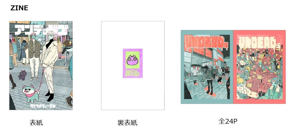 そのほか、今回のプロジェクトでしか手に入らない、書き下ろしのアクリルキーホルダー・ステッカー・ZINE(過去コラボ企画・書き下ろし含む内容になります)