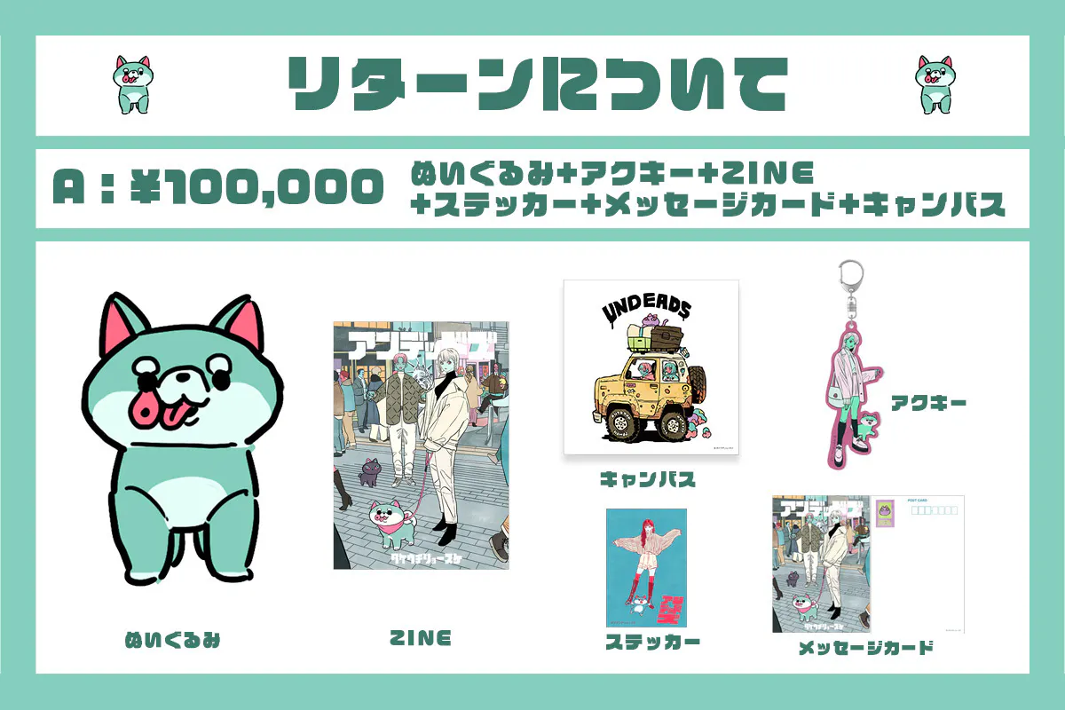 各リターンのメインは【ゾンビイヌ】のぬいぐるみとなります。