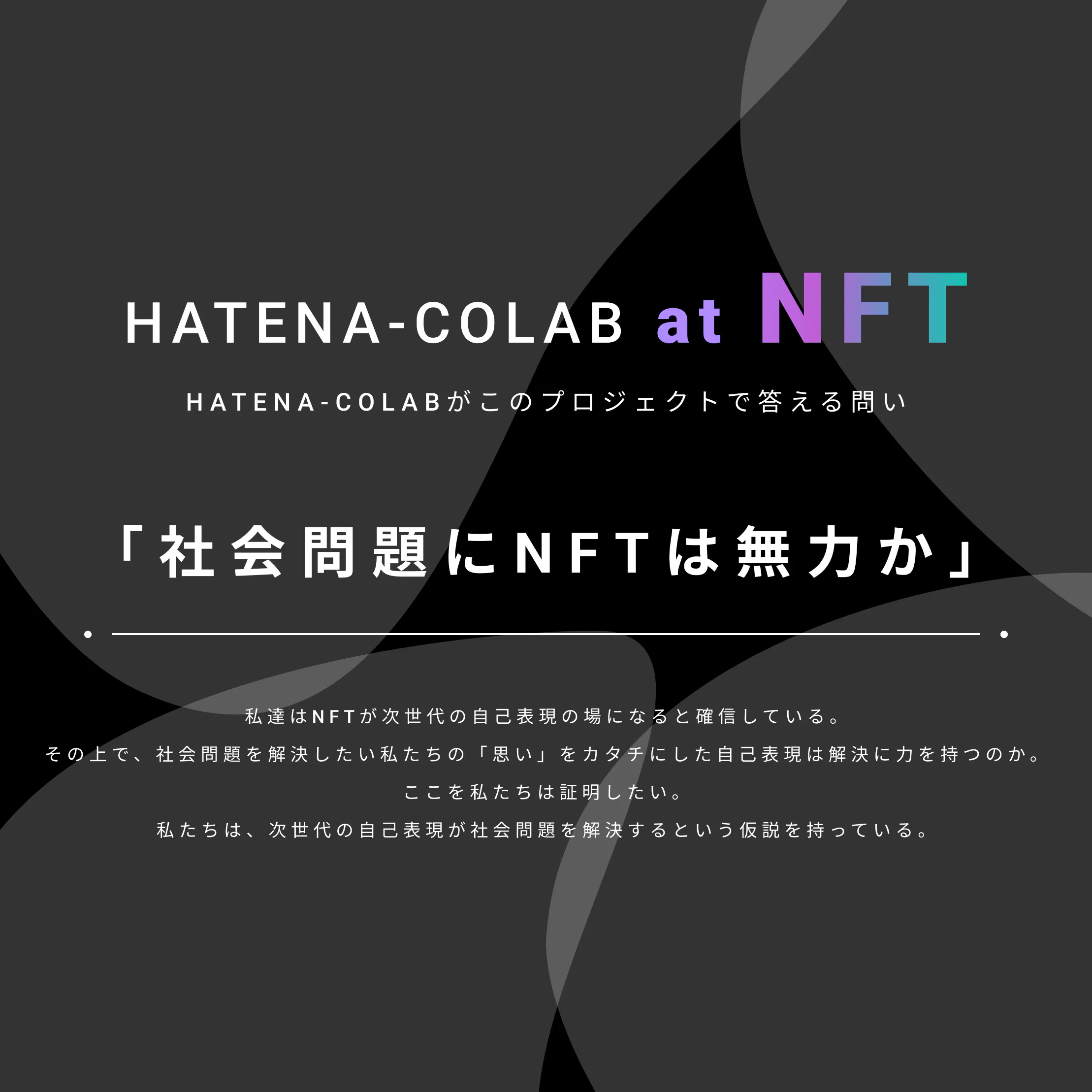 私たちは「社会問題に対してNFTは無力か」という問いに答えるべく、活動しています。