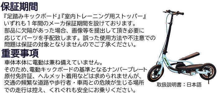 ※基本的には、『足踏みキックボード』『室内トレーニング用ストッパー』の返品不可です。ただし、到着7日以内に不備があった場合、お問い合わせは当ページよりご連絡頂き、確認でき次第、『足踏みキックボード』『室内トレーニング用ストッパー』の交換をいたします。(例えば、商品到着して開封して商品の傷、破損等)なお、7日すぎた、『足踏みキックボード』『室内トレーニング用ストッパー』の交換対応はできません。